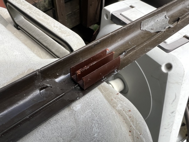 あとは取り付けるのを待つだけ、と言いたいところだけど、困ったことに取り付け部(ドア側の金具に押し込むT字部分)が割れてしまっていて、金具が噛んでくれないので結局取り付けられない、という悪循環状態になっていた。