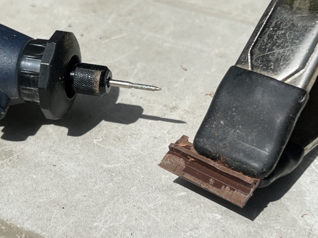 ちょうど良さそうな雰囲気なので、リューターで山の両側を切り落としてT字にする。
