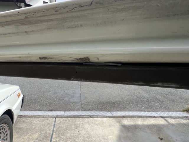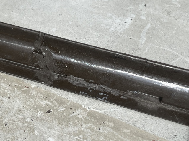 以前のプラリペアの痕跡をリューターで削り落としてから、ゼムクリップを曲げたやつを押し当てて半田ゴテで溶かして埋め込み、グラスファイバーをPOR15で同化させた。信濃大町のダイソーで、1つだけ欲しかったのに260個買う羽目になったゼムクリップがこんなところで役に立つとは。 pic.twitter.com/1TFDRD6n6X