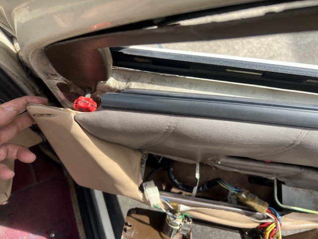 左右ドアの窓枠沿いのプラ部品が割れてプラプラしてしまっていた。ピアッツァの持病だ。ピアッツァに限らずこの時代のクルマはみんな似たようなものだろう。