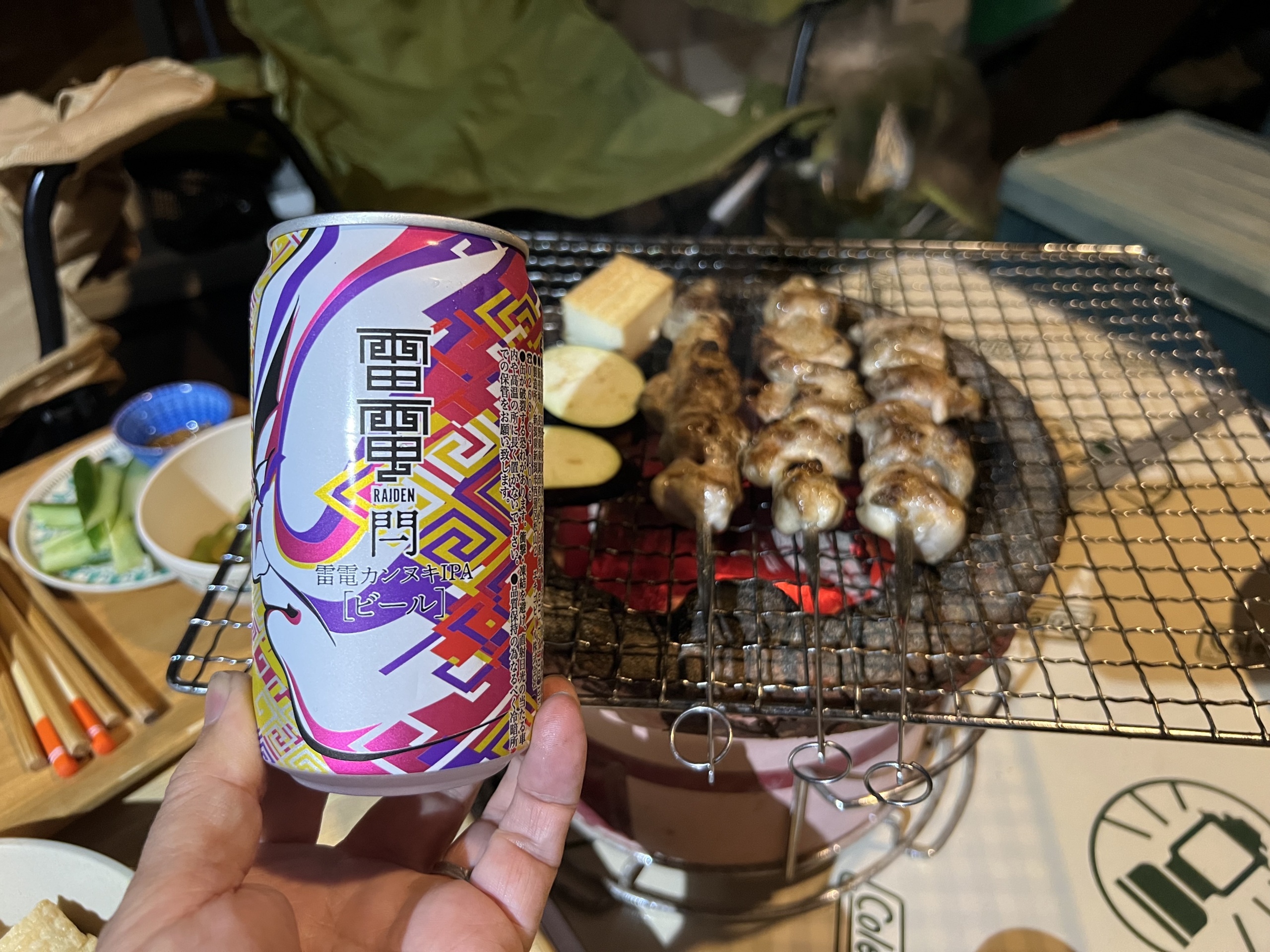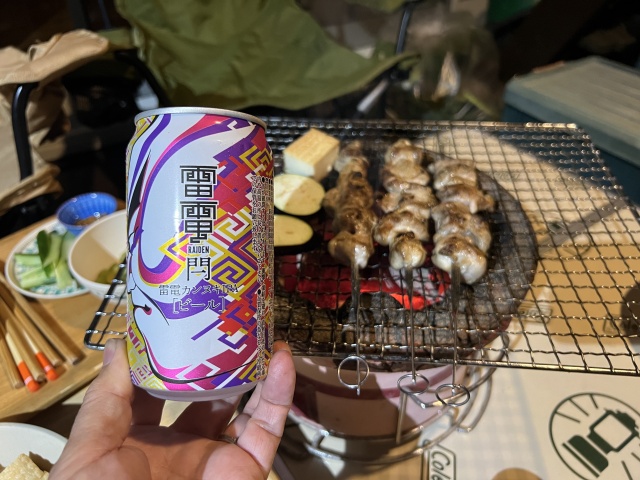 これにて本日の作業はおしまい。晩飯は東御市の道の駅で買ってきた雷電ビールと焼き鳥にした。