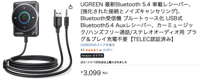 このELECTRONICX社製アダプタには3.5mmオーディオ端子があるので、iPhone側にUSB-C→オーディオ変換ケーブルをかませば、有線接続自体は維持することができる。音質重視ならコレが使える。ただ、当たり前だけど7618J本体やリモコンからの曲制御はできない。片手落ちだ。