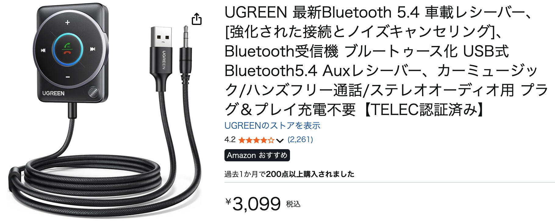 とりあえず接続は有線にして、曲制御だけ主にバイク用として使っているBluetoothリモコンを使う手もある。実際、高速道路長時間走行時はそれを使っている。しかし接続する機器が増えると色々面倒なので、それらの常用はあまり気が進まない。