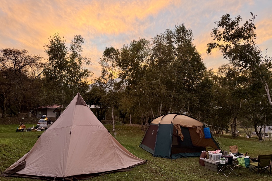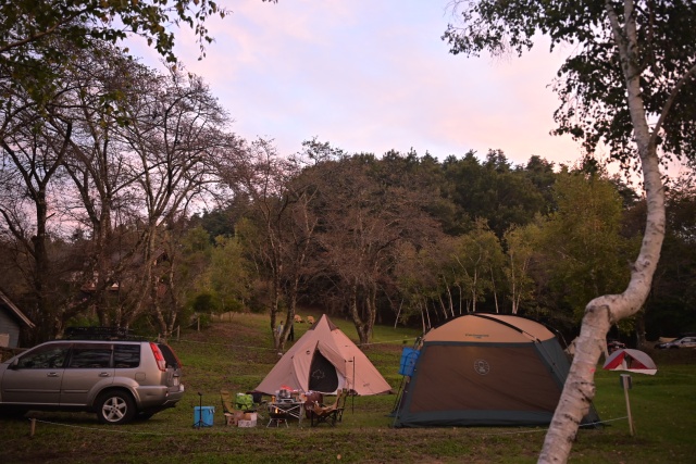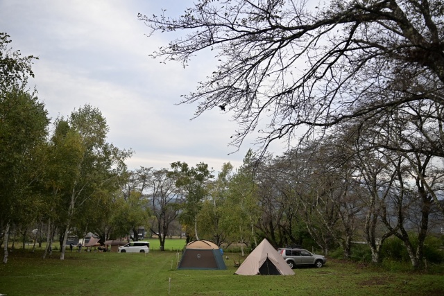どうやらウチが最後の来客のようで、空いている場所を好きに使ってもらって構わないとのこと。本来なら15組ぐらいは泊まれそうなところに10組もいないのでかなり空いている。オジサンは明言こそしなかったが明らかに推しているサイトがあったので素直にそこを選ぶ。受付棟に移動して手続きをする。支払いはなっぷのオンライン決済で既に済んでいるので紙に記入するだけ。近くの温泉の割引券をもらう。ゴミはビン・カンは捨てられるが、それ以外は動物対策で持ち帰りのみとのこと。
