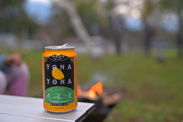 日が暮れる前に焚き火をつける。落ち着いたところでビールで乾杯にする。