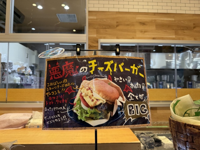 入って早々にジューススタンドがあったり、鮮魚を売っている水槽があったりして期待感が高まる。惣菜コーナーは期待通り充実していたが、この主張の激しいチーズバーガーに強く惹かれてしまった。