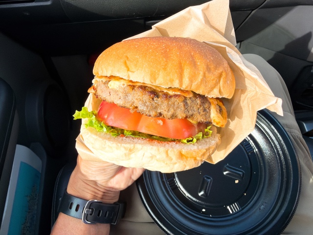 かくしてチーズバーガーを3個購入し、車内でチーズバーガーを頬張る。