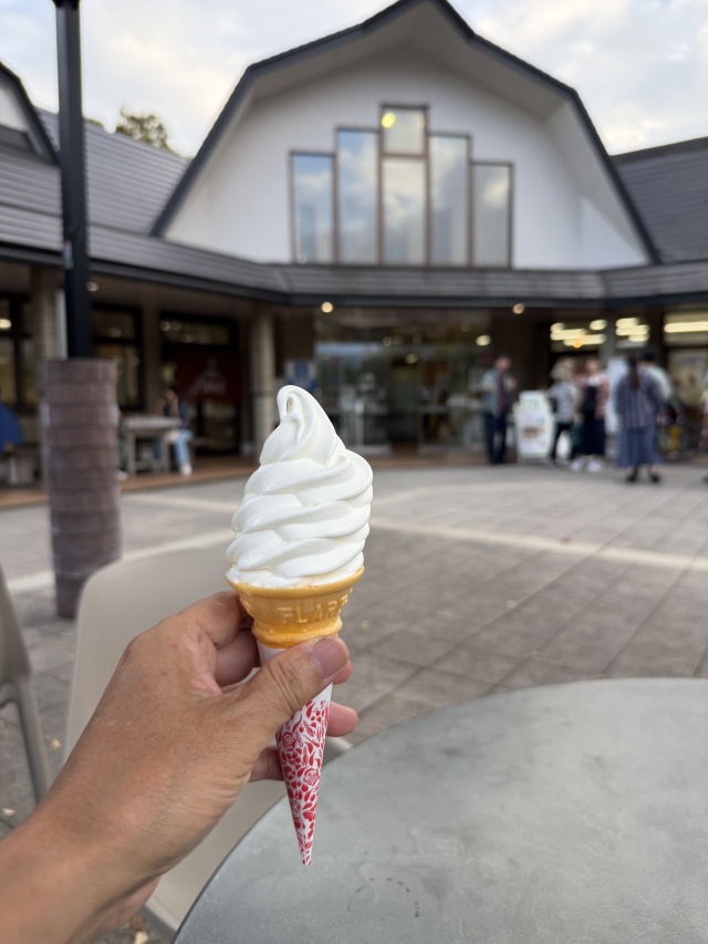新山梨環状道路と精進ブルーラインで精進湖に出て、本栖湖をかすめて朝霧高原の道の駅に行く。そこでソフトクリームを買う。バニラと牛乳ソフトという、どっちがいいのかよくわからない選択肢があったが、50円高い牛乳ソフトの方を選ぶ。