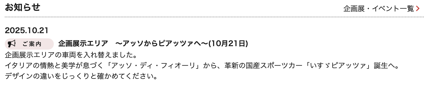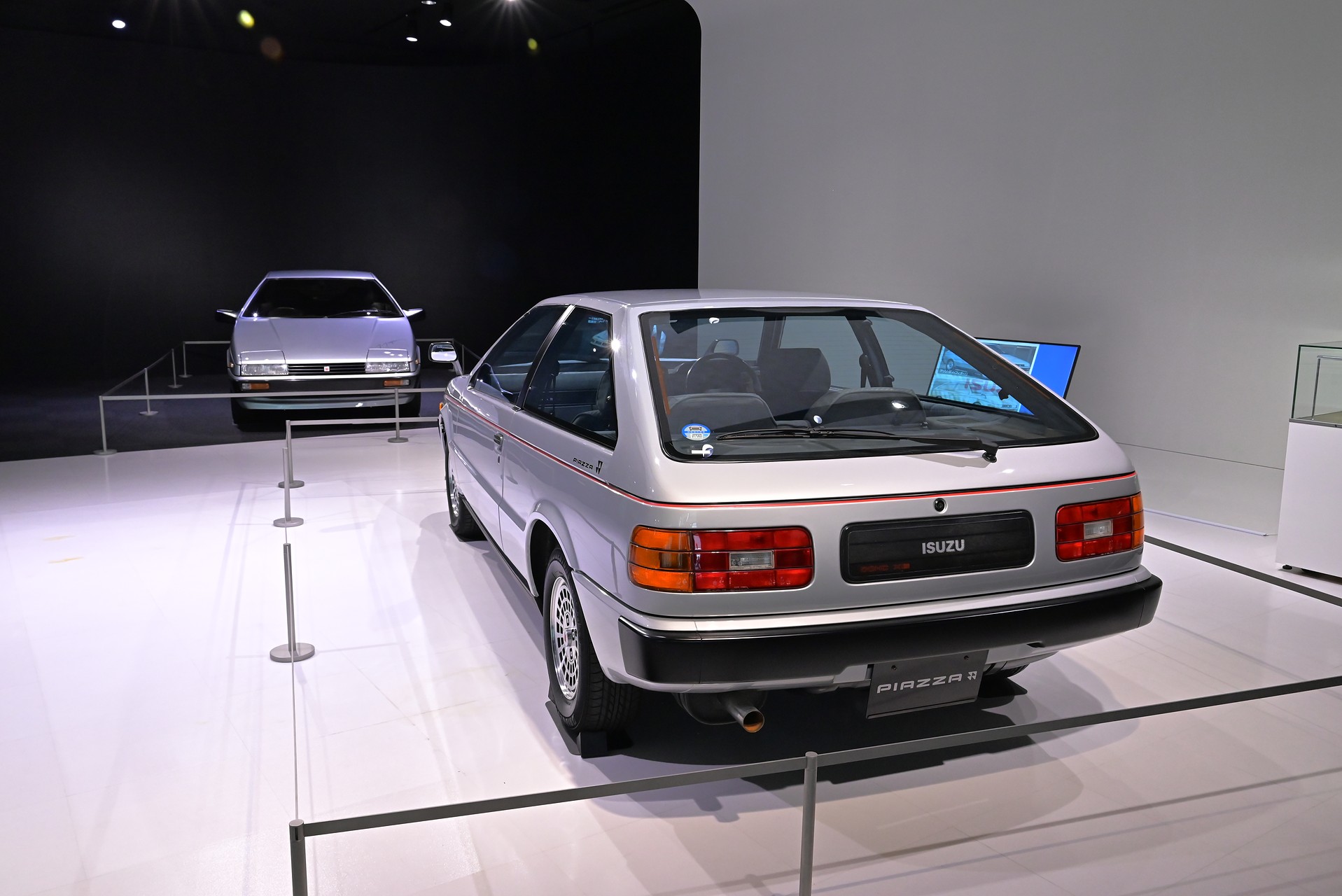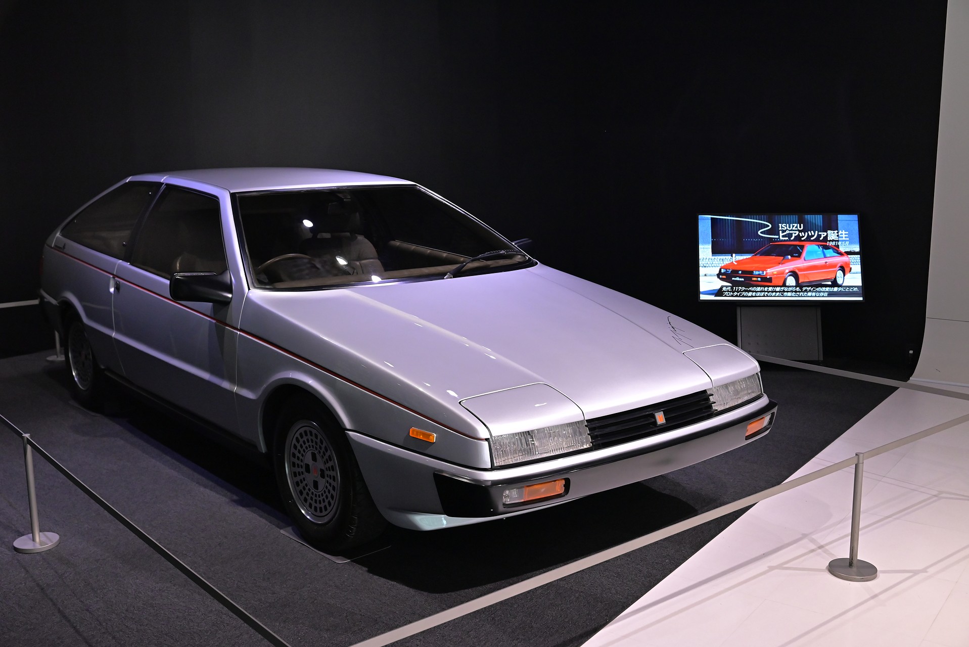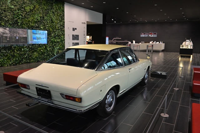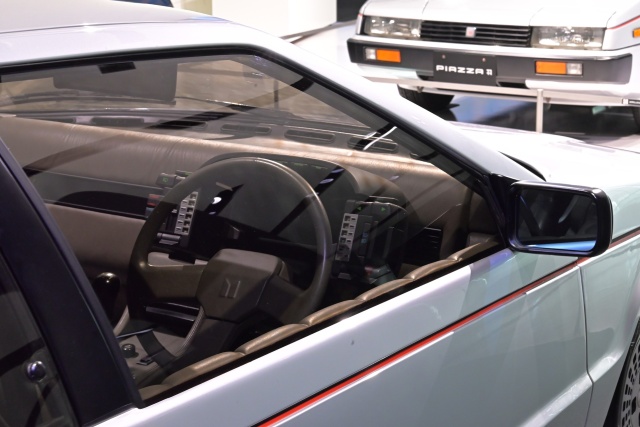 以前Asso di fioriを展示していたのはエントランスだったけど、今回は別の場所で、いすゞプラザ所有のJR130ピアッツァと並べて展示してあるそうだ。4月にオートモビルカウンシルに展示していたし、先日は名古屋にも展示したらしいし、今年は随分とAsso di fioriの露出が多いな。