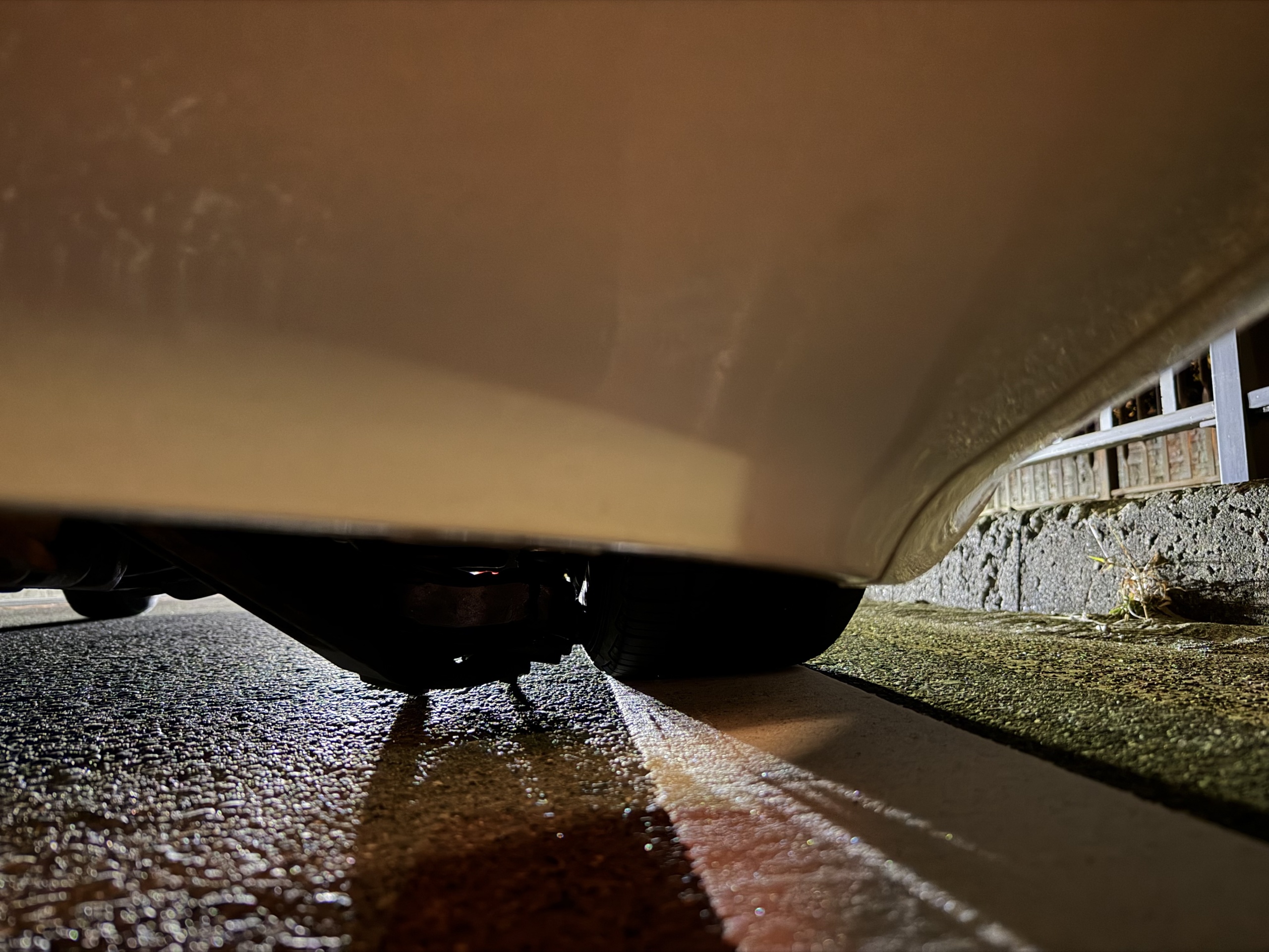 そもそも、左フロントがこんな状態になったというのに、ロアアームが削れた(と思われる)以外に致命的な損傷は無さそうだというのは、まさに不幸中の幸いだ。これが籠坂峠の下り坂だったりしたら目も当てられない。間違いなく大破して再起不能になっていただろう。