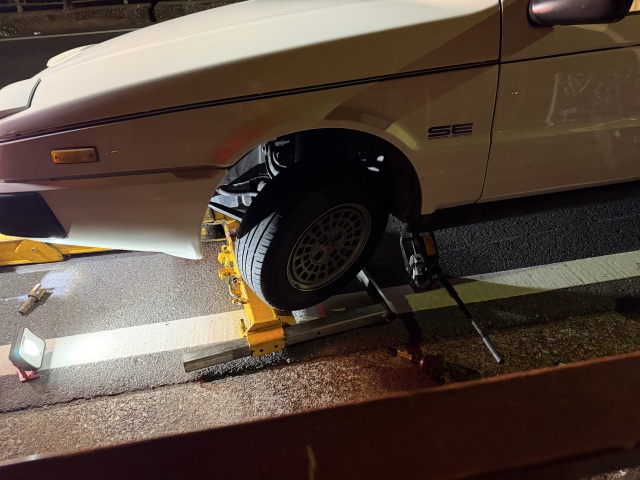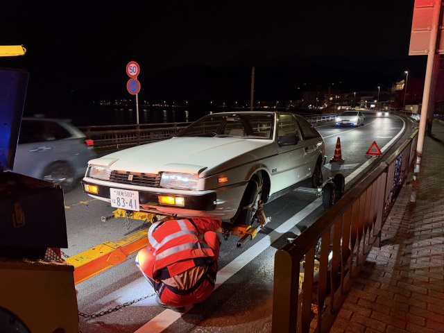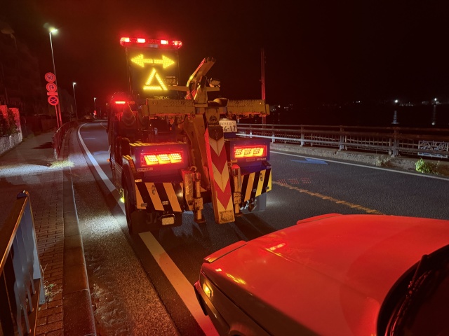 JAFの人は、時間も時間なので工場はやっていないだろうから、いったん自宅に持って行って翌日二次搬送することも可能、と言ってくれたけど、自宅はレッカーで引いた状態で行けるような場所じゃない。こんな時間に連絡がとれる工場なんて多分無いだろうから、どっかの工場の前に勝手に置いて帰るぐらいしかないんじゃなかろうか。