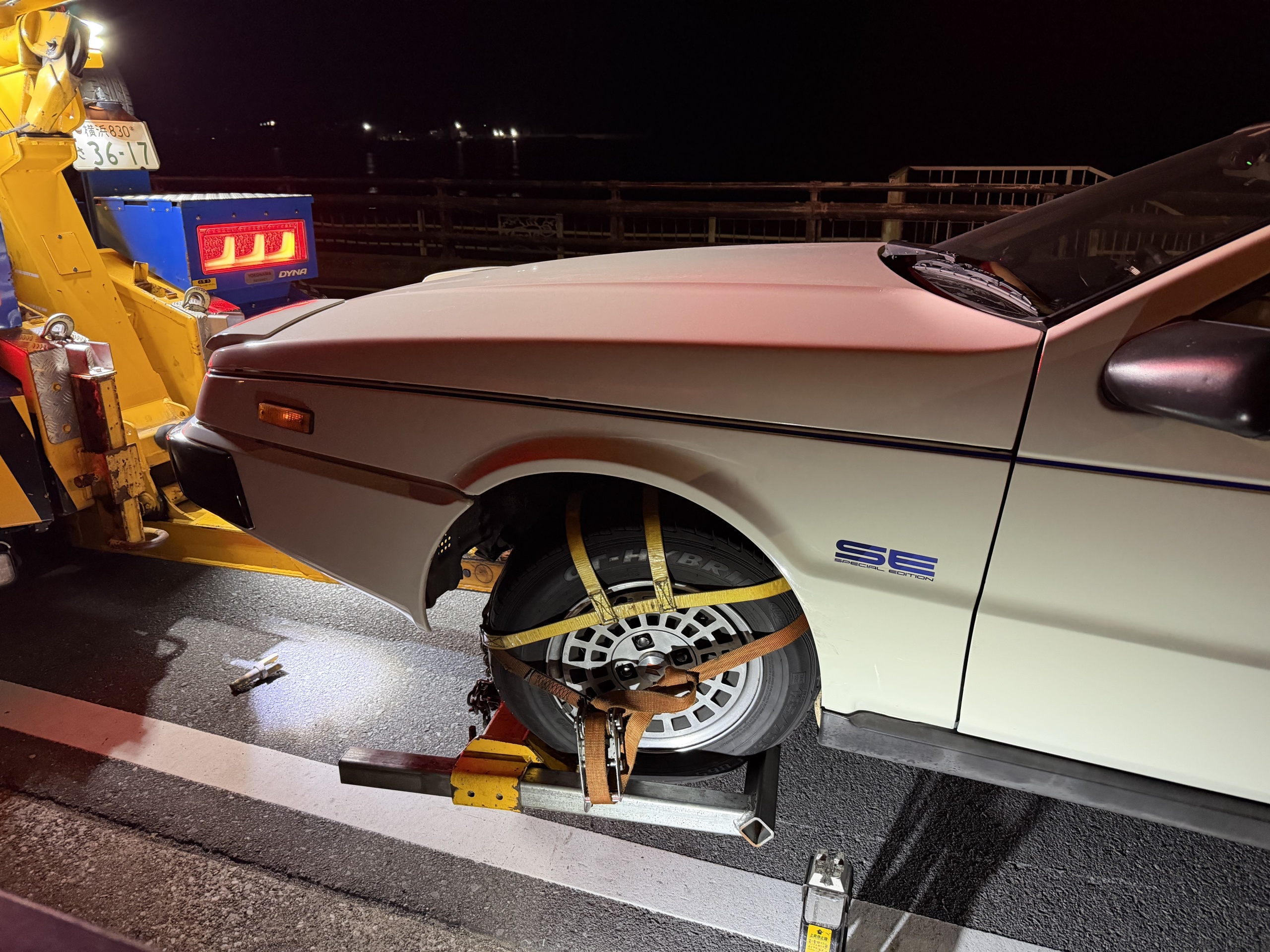 帰宅後、そそくさとカップ焼きそばを食って自家用車で出発した。深夜もいいところなので道は空いている。途中のコンビニで缶珈琲を買ってハトリックスに向かう。レッカーはひと足先に到着していた。