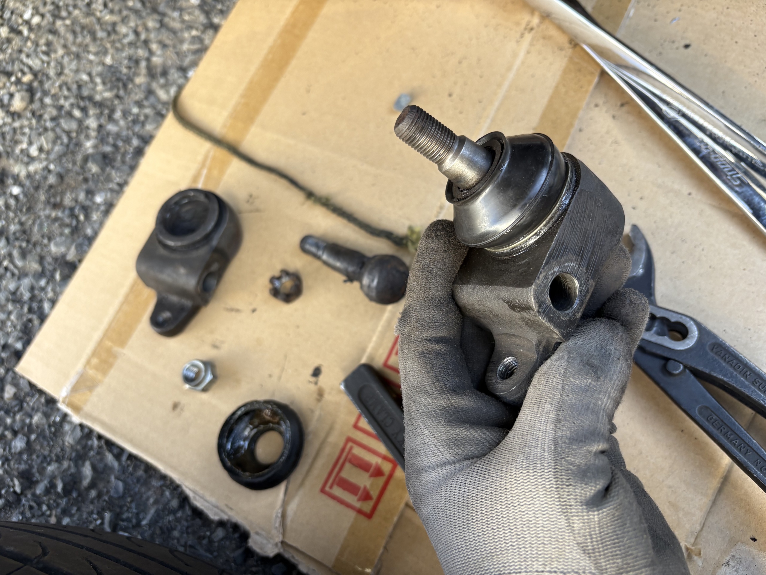 ちなみに、それ以外の壊れていないボールジョイントをグリグリしてみると、どれも微妙にゴリゴリしていて動きは若干渋い。以前購入した未使用新品をグリグリした時のことはよく覚えていないけど、こんなにゴリゴリしていなかった気はする。このせいでステアリング操作が若干重かったと考えると一応納得はいく。