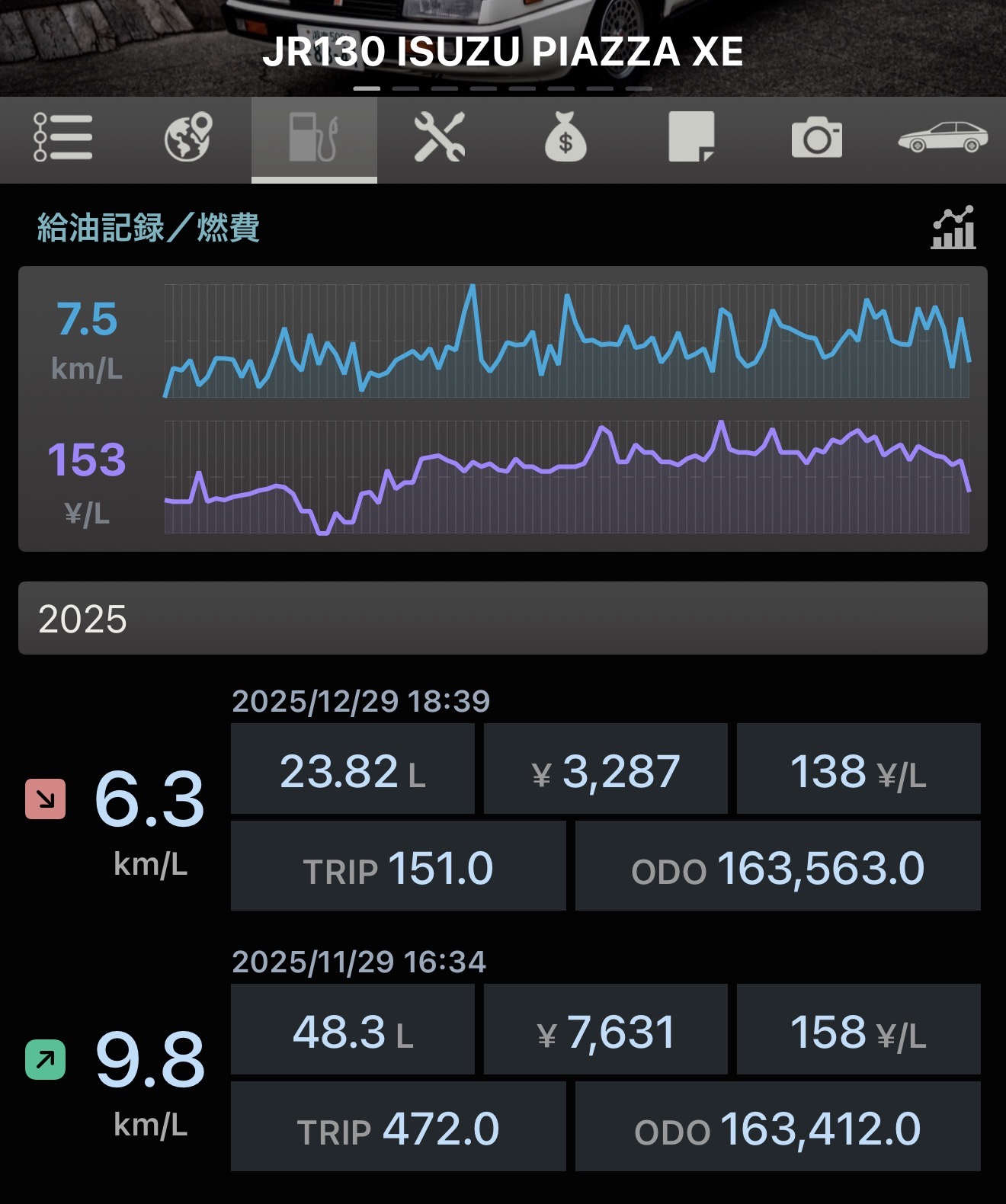 トラブル時に約5時間ほどアイドリングさせ続けていたため、どの程度ガソリンを消費したのかよくわからない。前回復調気味だった燃料計は今回は不調で、全く動かない。残量がさっぱりわからないので給油しておく。