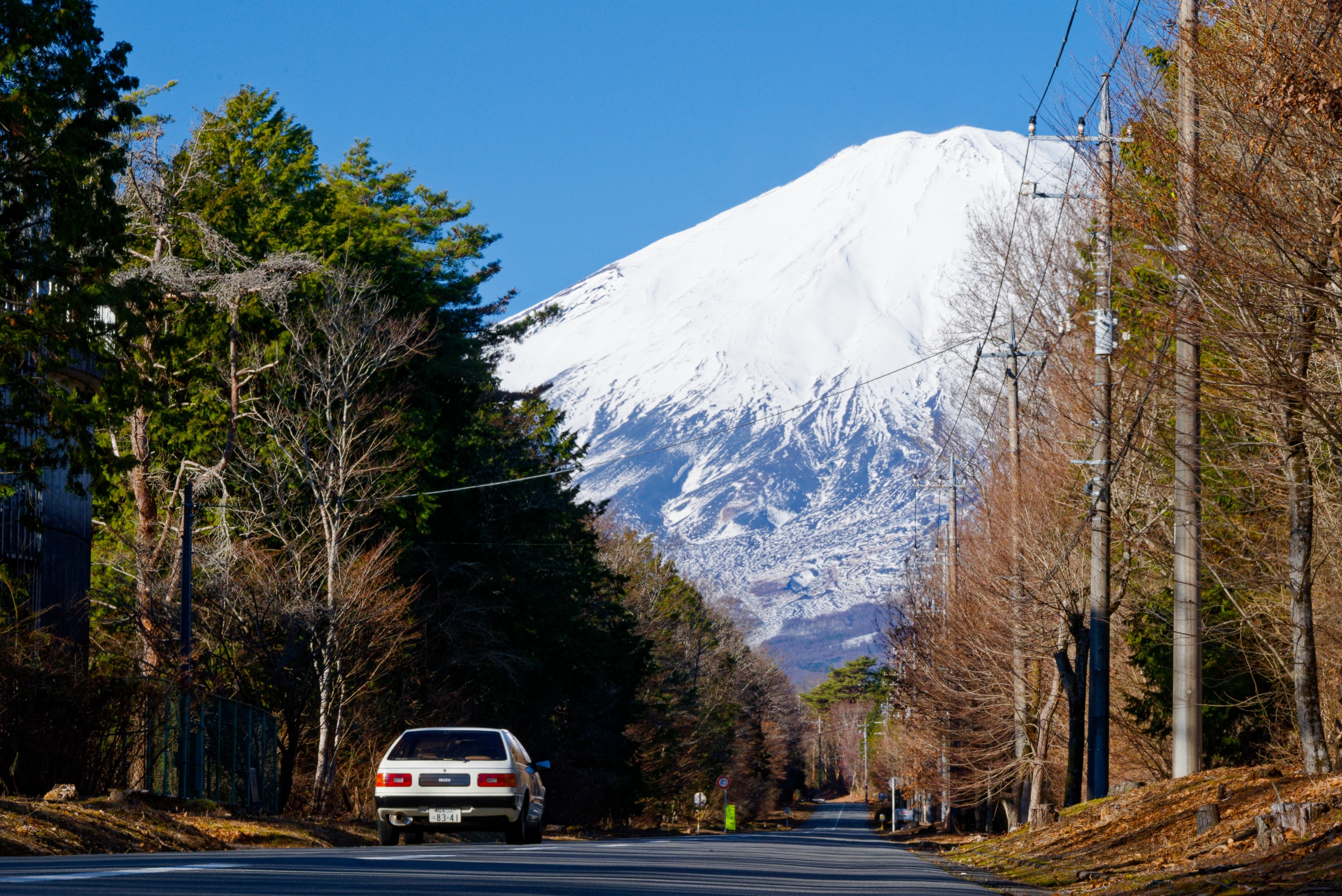 少なくともここまでは路面凍結の気配はない。そしてこの快晴。こうなると山中湖方面に行ってみたくなる。そこで、普段あまり使わない県道で須走方面に向かう。たまに見える富士山がいい感じだ。