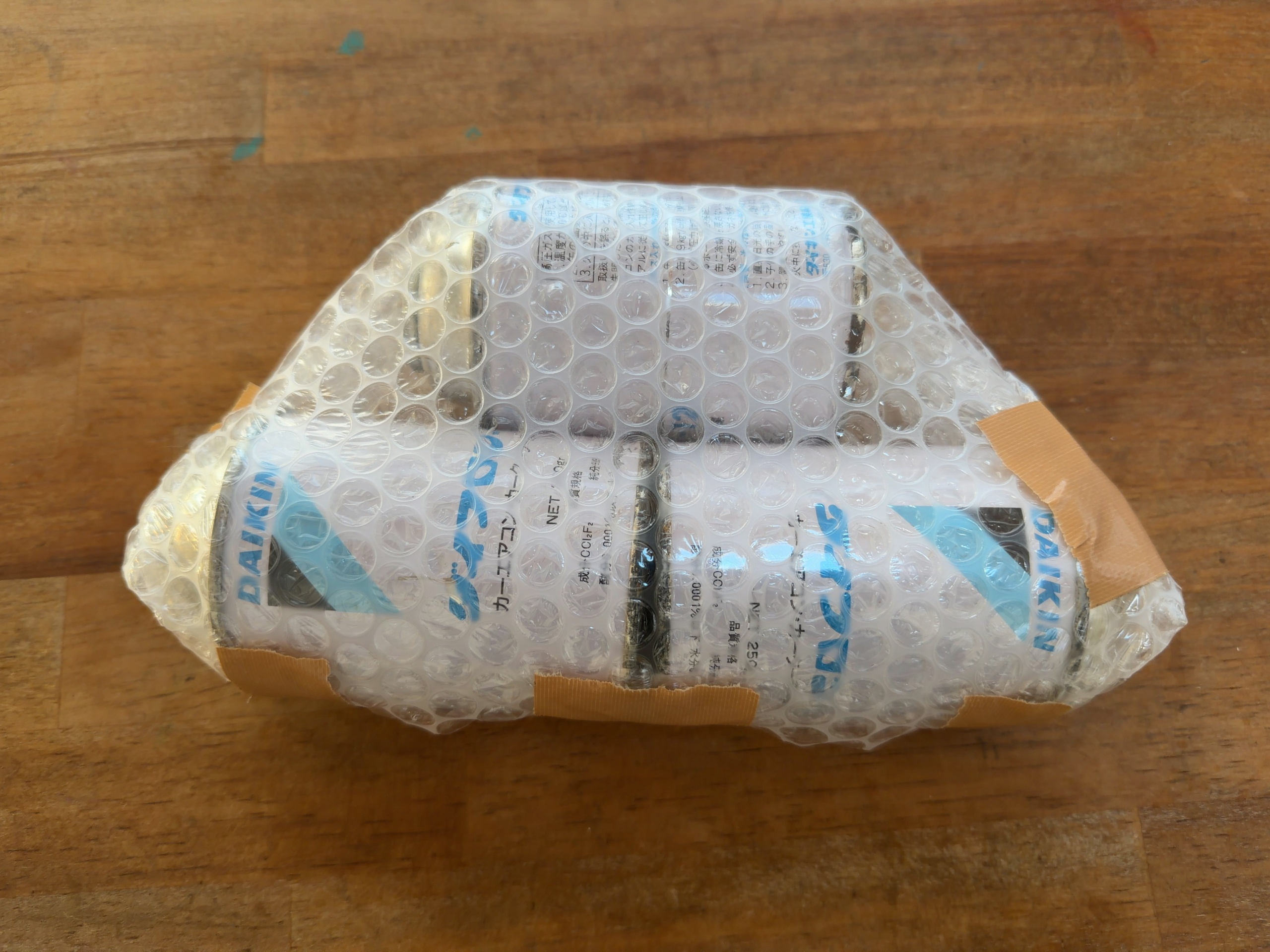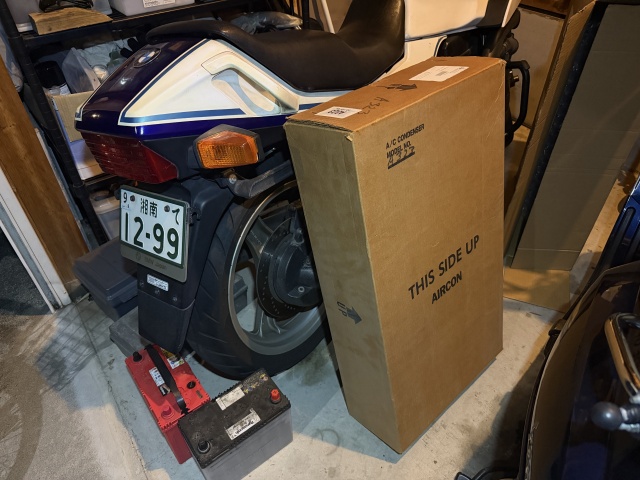 あとは、今回交換を依頼するエアコンコンデンサー(RockAutoで部品購入済み)、コンデンサー用のOリング純正部品(モノタロウで部品購入済み)、ヤフオクで購入したR12エアコンガスを積み、車内を整理して準備完了。