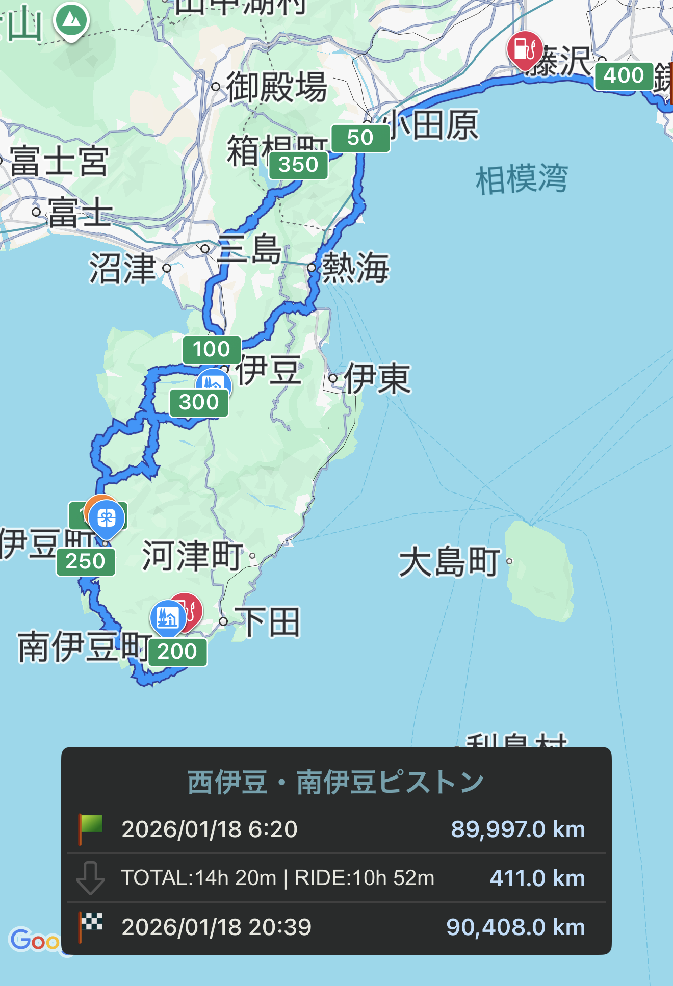 いつもはワンパターンで時計回りばっかりしていた伊豆ツーリング、はじめて西伊豆側をピストンで走ってみたけど、案外悪くなかった…というか、これの方が満足感が高い気がする。