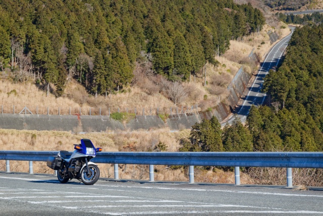 そして本日の最初のハイライト、西伊豆スカイラインに向かう。本音を言えば、もっと陽が上がって路面がドライになってから向かいたいところだけど、そこまでボケーと待つような時間的余裕はない。これまでの道路状況を考えれば、慎重に走っていれば問題ないだろう。