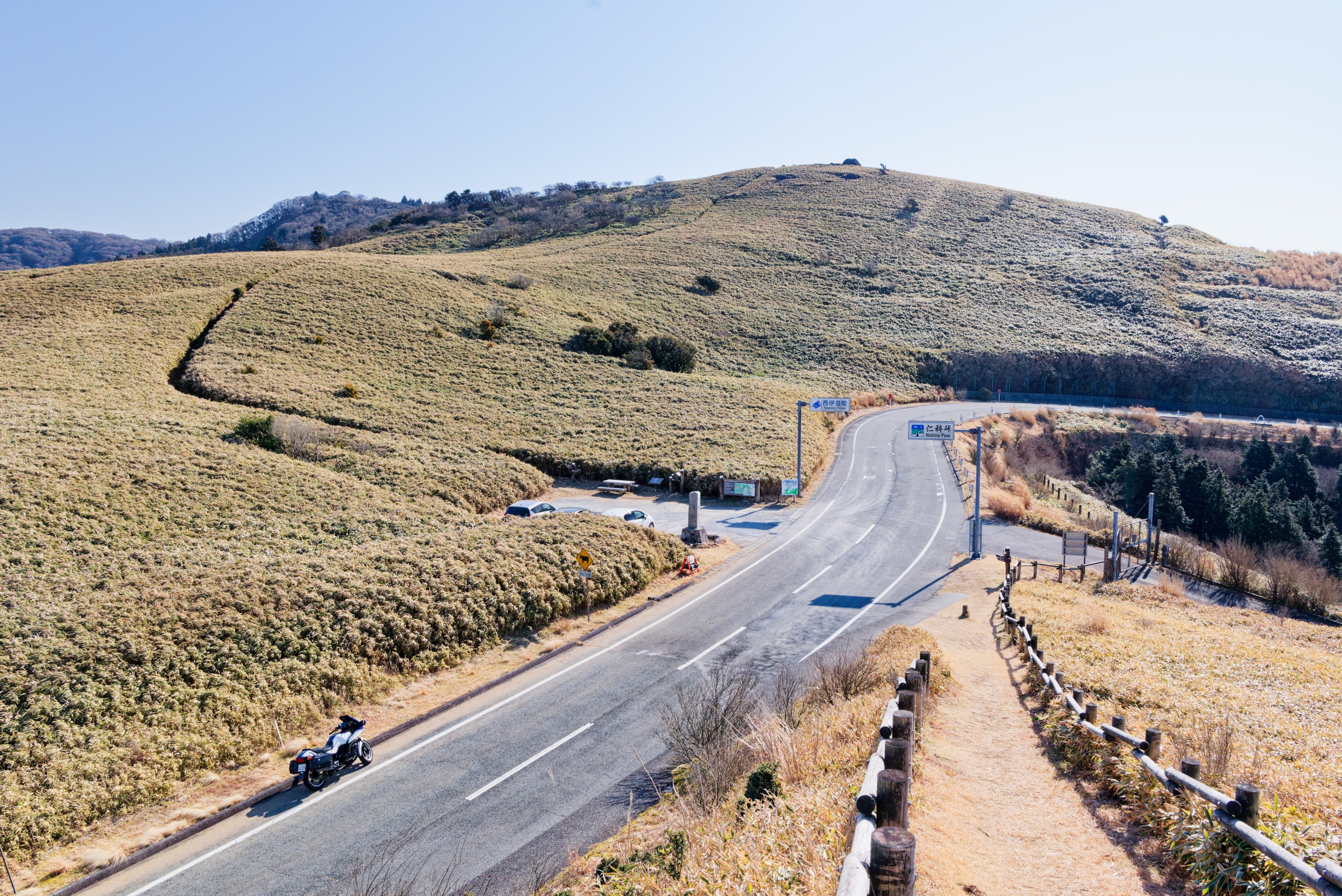 控えめな速度で山を登り、伊豆スカイラインの山伏峠ICを過ぎると下りが始まる。下りの方がより慎重になる。県道を下りきって宇佐美大仁道路に出て大仁方面に向かい、伊豆中央道の無料区間を走ってから虹の郷方面に向かう裏道に入る。こちらも山伏峠と同じく濡れている。達磨山の展望台に向かう県道もやっぱり濡れている。ここまで来るとだいぶ慣れてくるけど、高度が上がるにつれて緊張感も高まる。