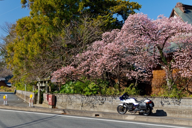いつもだったら引き返すか山を下るか悩むところだけど、既に満足しているのでそのまま進んで宇久須方面へ山下りをする。平地まで降りてきたら桜が咲いていた。伊豆はこういう河津桜よりさらに早咲きの桜がちょいちょい現れる。