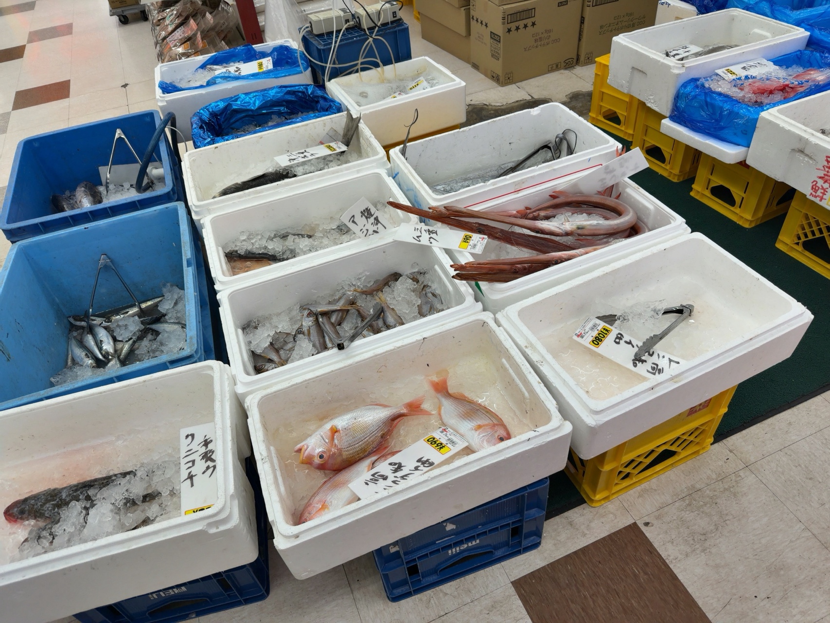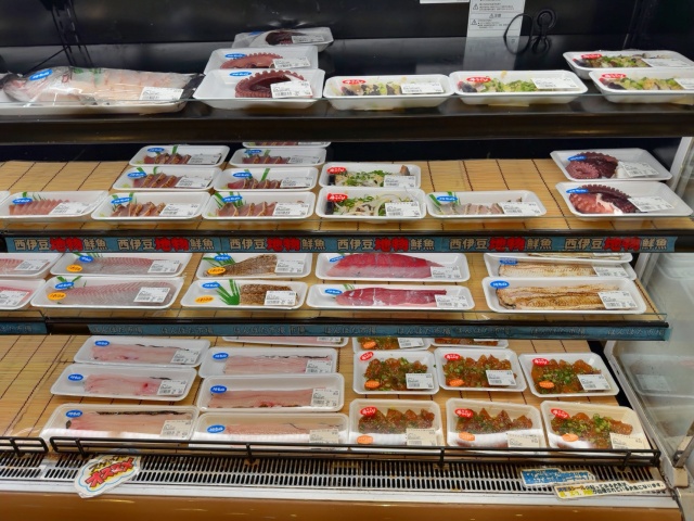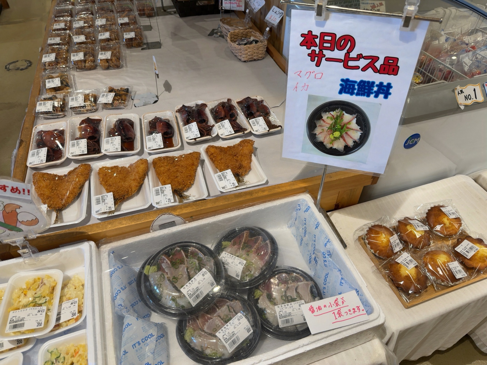 いかにも田舎のスーパーといった店内には鮮魚店の如く魚が並んでいる。他の品揃えも悪くない…のだけど、惣菜類はもうずいぶん売れてしまったらしく、ほんのちょっとしか残っていない。さっきのはんばた市場で食っておいて良かった。結局何も買わずに店を出てしまった。