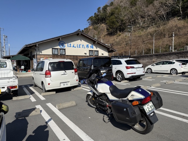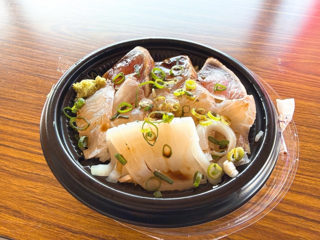 R136に入り、黄金崎や幾つかの海岸を素通りして、堂ヶ島を過ぎたところにあるはんばた市場に寄る。珍しい刺身や鮮魚が売られていて面白い。土産物を買うだけのつもりだったけど弁当類もうまそうだ。その中でも海鮮丼が量もほどほど(眠くならない程度)で中身も魅力的だったので、思わず手に取ってしまった。その他、土産用に漬け刺身と冷凍鰹たたきを買う。冷凍は当然もたないので明日には食うつもりで買う。