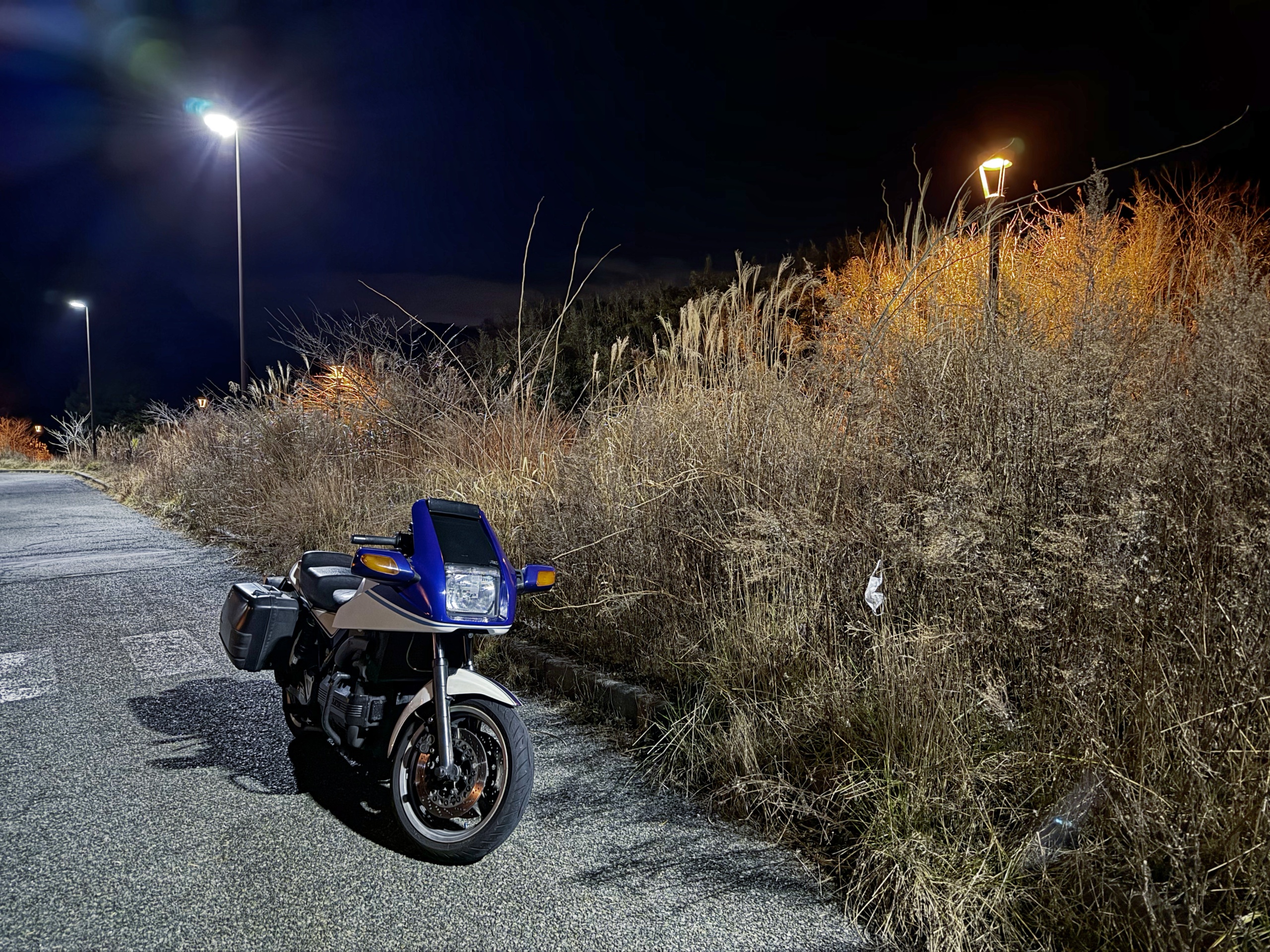 店から出るとだいぶ暗くなっていた。買ったものをパニアケースの左右に振り分け、防寒装備の準備をした上で出走する。