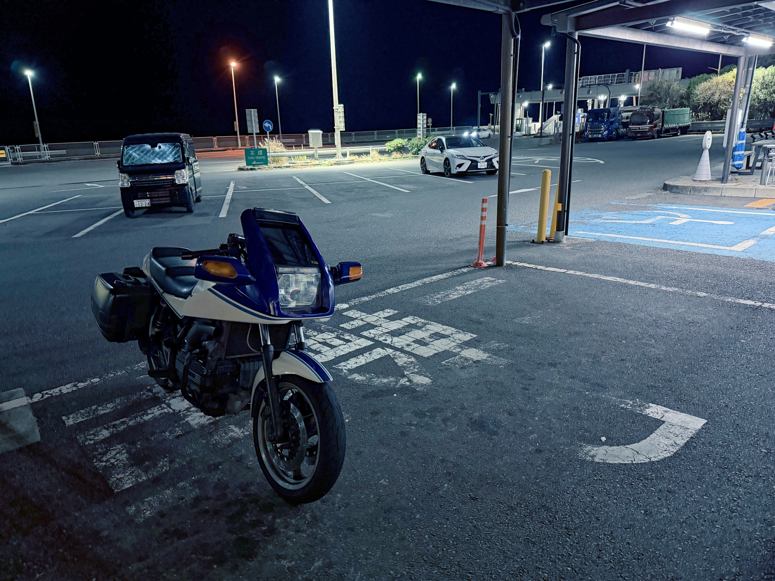 完全に陽が暮れるともっと寒くなるので、とにかくここからはガンガン走るしかない。幸いなことに西伊豆の一般車の走行ペースは速く、交通量も少なめなので進みは早い。それでも土肥を過ぎて船原峠を登っているうちに真っ暗になってしまった。船原トンネルから先は、もう心を無にして走るだけになる。