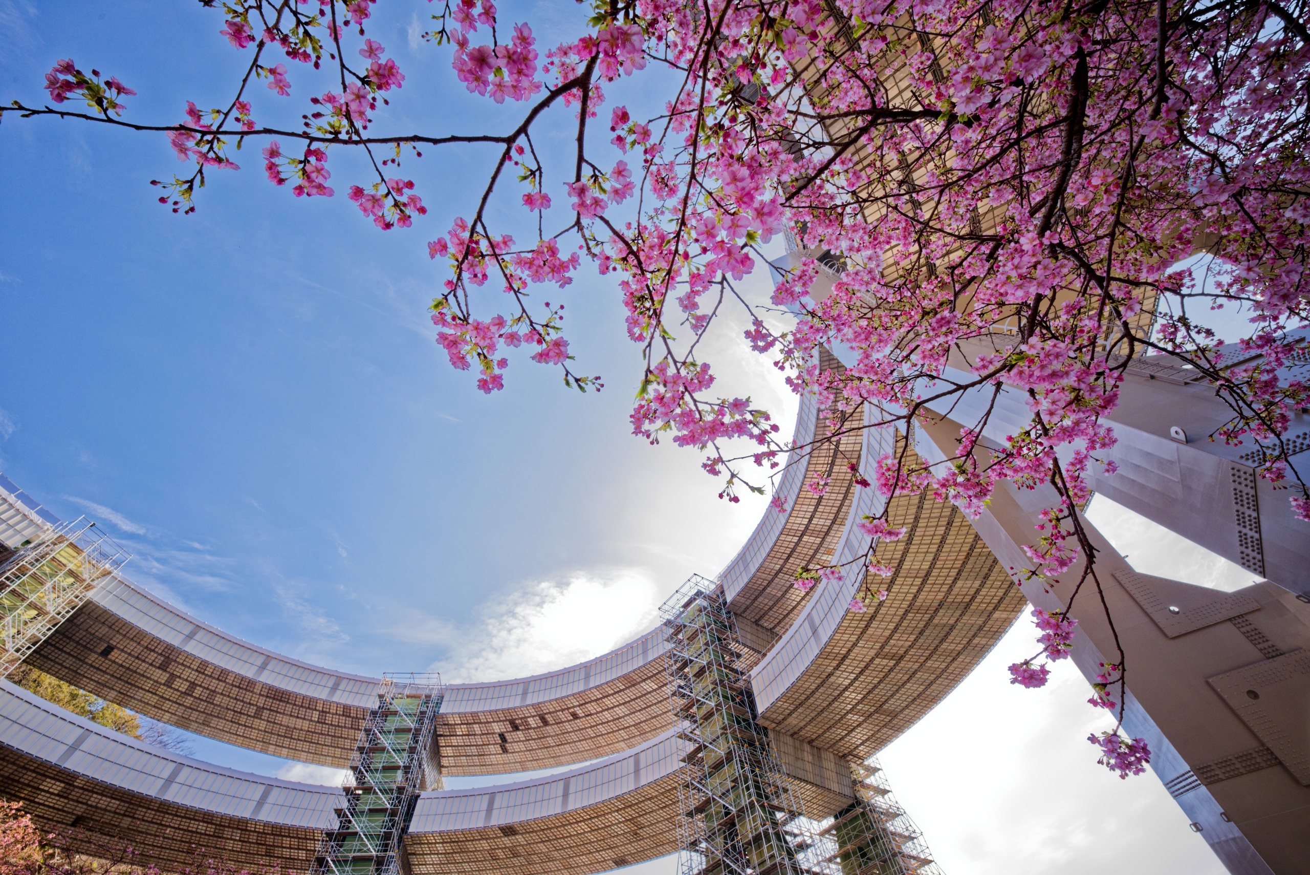 大仁の市街地まで降りて、しばらく一般道を走ってから伊豆縦貫道の無料区間、R414と南下していく。天城越えの道の駅で小休止して、ループ橋を過ぎたところで河津七滝方面へ向かう。ループ橋は塗装工事をしているらしく、駐車場も工事関係で一部占有されている。ループ今日自体も工事のために覆われていて見た目が普段と違う。ここは14mmレンズが活躍する(ここ以外に出番がない)。